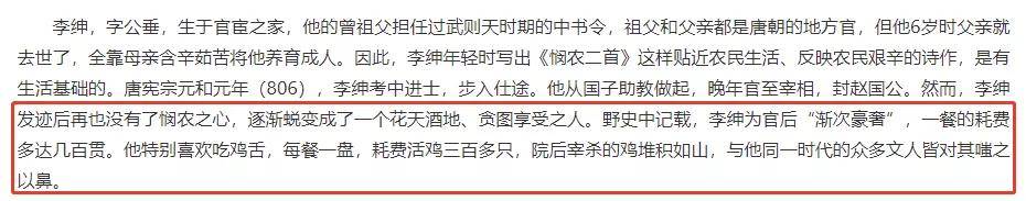 更讽刺的是,那位写了“粒粒皆辛苦”的诗人李绅,在步入仕途之后,早已忘记了如何“悯农”,生活过得那叫一个骄奢淫逸。