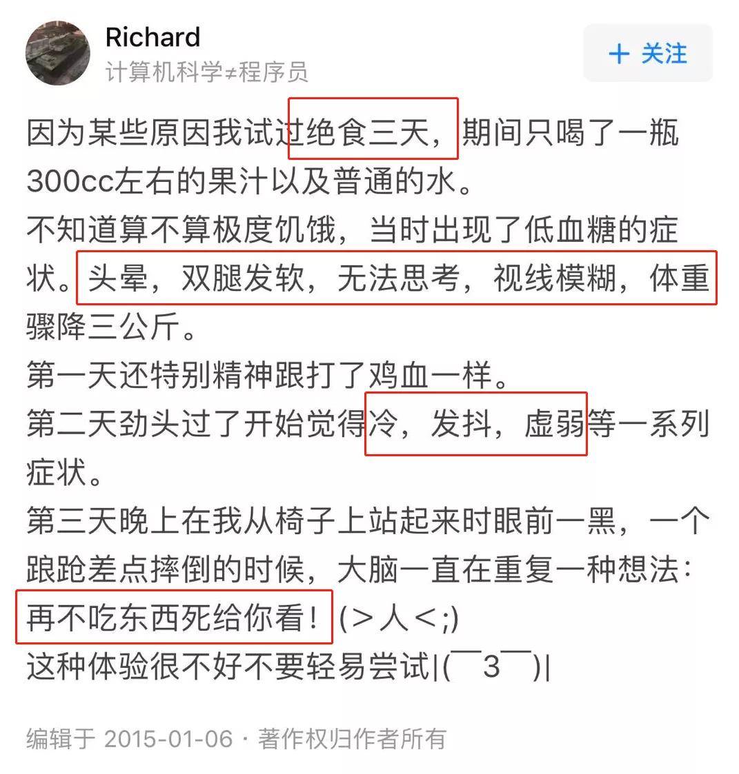吃完饭,我活过来了,还在网上搜到一些时间更长的饥饿体验(请大家不要模仿!):
