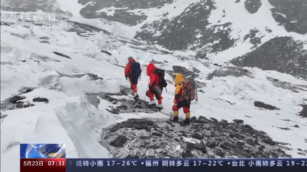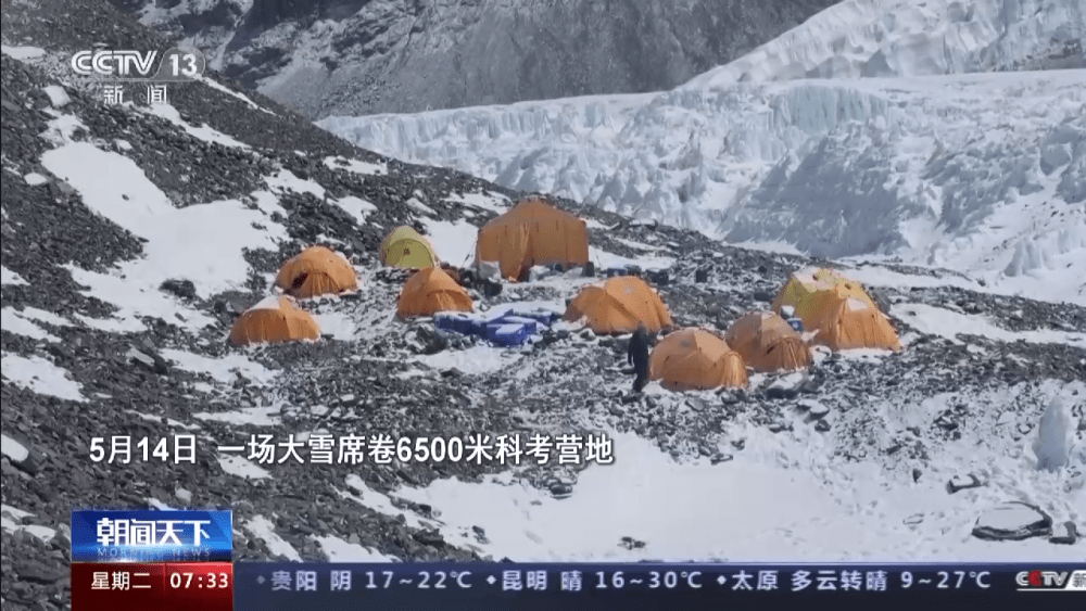 总台记者 陈琴:现在时间是5月13日晚上的9点50分,参与7790米和8300米自动气象站升级改造的这些科考登顶人员,还有我们修路的维护人员,最后一批将抵达这里。
